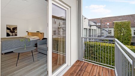 Vores Superior dobbeltværelser er designet til at være både stilfulde og moderne, med enten balkon eller terrasse i bygning THORS HOUSE.