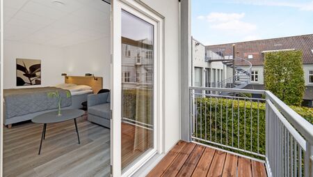 Alle værelserne har balkon/terrasse og er med trægulve.