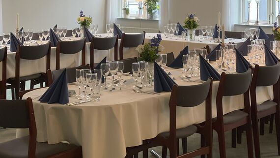 Opdækning, duge, servietter og blomster tilpasses efter jeres eget ønske.